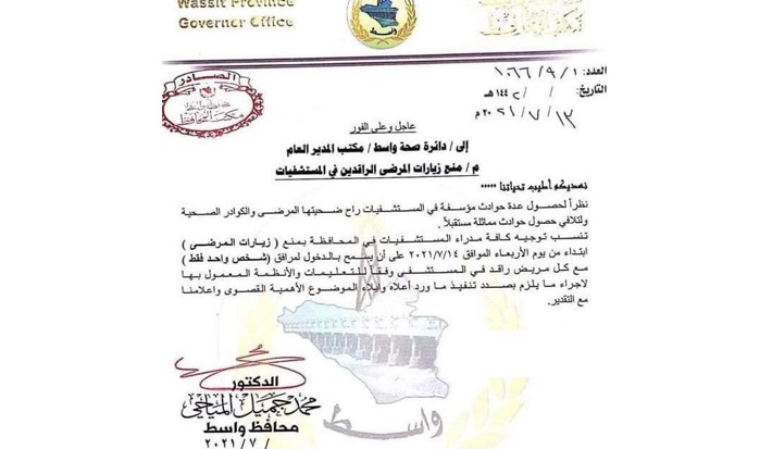 أكمل القراءة »بالوثيقة.. واسط تمنع زيارات المرضى الراقدين بالمستشفيات تجنبا للكوارث