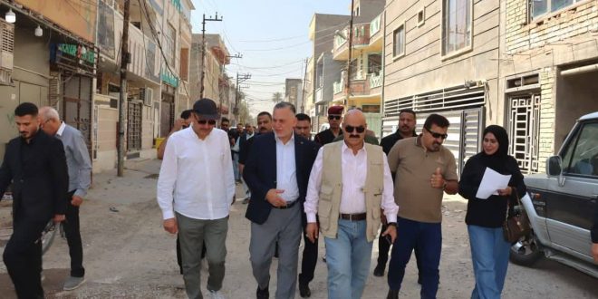 حيث تفقد مشروع تاهيل وتطوير منطقة الضباط الثانية وحي الامير ضمن بلدية الغدير التي تمت المباشرة فيها بأعمال الطرق، بعد إنجاز جزء كبير من أعمال شبكة الصرف الصحي التي نفذتها دائرة مجاري بغداد ضمن مشاريع الفريق.