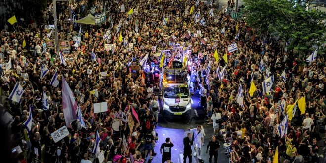 تظاهر الآلاف في شوارع تل أبيب للمطالبة بوضع حد للحرب في قطاع غزة، غداة إقرار المجلس الوزاري الأمني المصغّر خطة للسيطرة على مدينة غزة.
