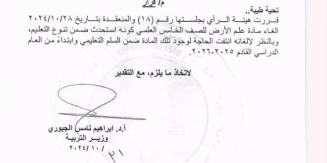 التربية تعلن الغاء مادة علم الأرض للصف الخامس العلمي للعام الدراسي الحالي 27 سبتمبر، 2025 اخبار محلية, الرئيسية التعليقات على التربية تعلن الغاء مادة علم الأرض للصف الخامس العلمي للعام الدراسي الحالي مغلقة 4 زيارة مقالات مشابهة ياسمين عبد العزيز: الشهرة مش أحسن حاجة.. ومعشتش حياتي من عمر الـ12 سنة 21 ساعة مضت هل منعت الحالة النفسية شيرين عبدالوهاب من رؤية ابنتيها؟ 3 أيام مضت بغداد على خارطة السياحة العربية… تكريم آل فهيد وإعلان عواصم السياحة للمرحلة المقبلة 4 أيام مضت TweetShareSharePin0 Shares TweetShareSharePin0 Shares شاركها Facebook Twitter Google + Stumbleupon LinkedIn Pinterest