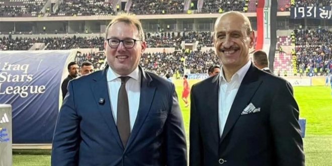 ونشر هاريس صورة تجمعه مع رئيس الاتحاد العراقي لكرة القدم عدنان درجال داخل ملعب المدينة، معلقا بالقول: “ليلة لا تُنسى في بغداد مع مواجهة الطلبة والقوة الجوية، فيما تتعاظم روح العراق وطموحه نحو كأس العالم 2026”.
