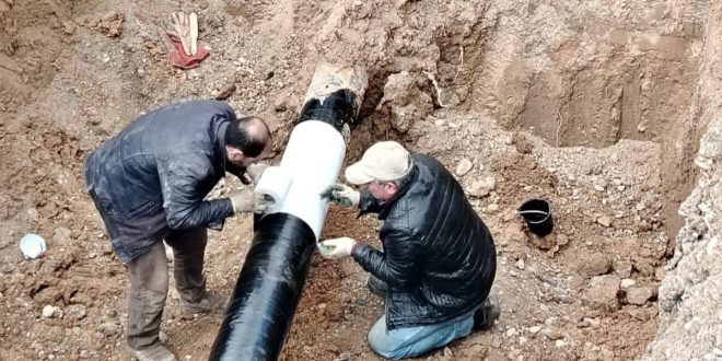 وتضمنت الأعمال إجراء الحفر الميكانيكي لاستخراج الجزء المتضرر من الأنبوب ومعالجة النضوح الحاصل فيه عبر تنفيذ أعمال ميكانيكية متخصصة أعقبها إعادة تغليف الأنبوب ودفنه وفق المواصفات المعتمدة