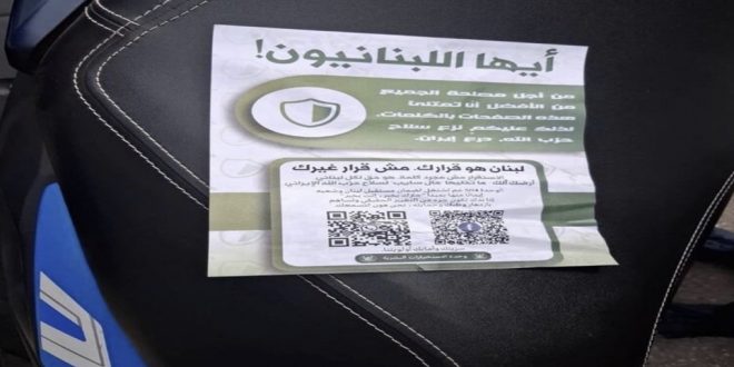 وجاء في نص المناشير بالعامية اللبنانية: “أيها اللبنانيون! من أجل مصلحة الجميع من الأفضل أن تمتلئ هذه الصفحات بالكلمات. لذلك عليكم نزع سلاح حزب الله، درع إيران”.