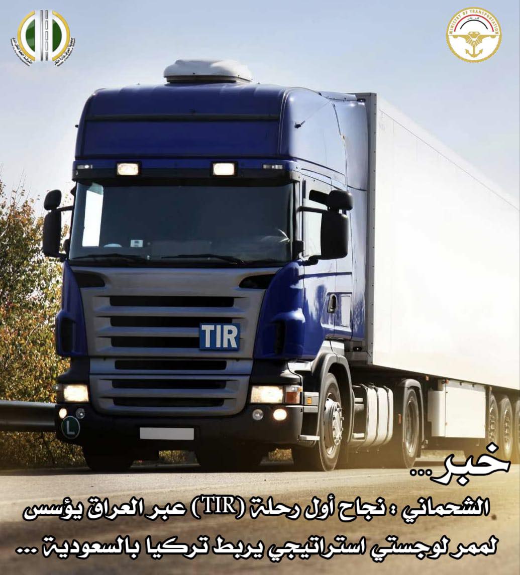 أعلن مدير عام الشركة العامة للنقل البري السيد مرتضى كريم الشحماني عن نجاح تنفيذ أول رحلة تجريبية ضمن نظام النقل الدولي البري (TIR) على المسار الجديد (تركيا – العراق – المملكة العربية السعودية) مؤكداً أن هذه الخطوة تمثل إنجازاً مهماً في مسار تطوير قطاع النقل والخدمات اللوجستية في العراق .